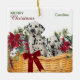 Dalmatian Puppies Poinsettia Christmas Basket Ceramic Ornament