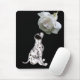 Cute dalmatian puppy smelling a lovely white rose with lingering raindrops animal mousepad - design by Susan. Click on Customise to add text and change background colour. This image is available on many products in my gallery. Please visit Smilin' Eyes Treasures to see more flower and nature photography and digital art cards and gifts.