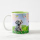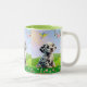 Dalmatian puppy sitting in a garden nursery Two-Tone coffee mug
