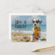 Dalmatian puppy wearing sunglasses on the beach. A fun postcard. Message "Life's a beach!" can be removed or replaced with your own message.