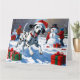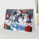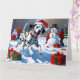 A spotted Dalmatian runs playfully through the snowy winter scene, wearing a festive red Christmas hat. This lively design highlights the breed’s distinctive coat, energetic personality, and cheerful spirit while capturing the warmth and joy of the holiday season. A heartwarming winter moment full of festive charm.