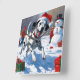 Dalmatian Running in Snow with Christmas Hat Square Wall Clock