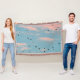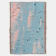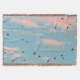 The pastel, dalmatian spotted print by ZoeSPEAK on this Throw Blanket was created from Zoe’s original photograph of an aqua blue sunset sky filled with puffy pink clouds and a flock of black birds. The birds become abstract black shapes scattered across the soft aqua and pink sky.