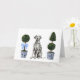 These greeting cards feature a watercolor portrait of a Dalmatian sitting in between two chinoiserie style topiaries.