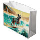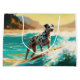 Immerse yourself in the playful world of canine adventure with this captivating painting. A spirited dog takes to the waves, skilfully riding the surf on a sun-kissed beach. The vibrant artwork beautifully captures the essence of beachside excitement as the dog fearlessly rides the waves, embodying the spirit of fun and freedom. With a harmonious blend of colours and dynamic brushstrokes, this piece brings the joy of surfing and the beach right into your space, making it a delightful addition to any art collection