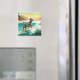 Immerse yourself in the playful world of canine adventure with this captivating painting. A spirited dog takes to the waves, skilfully riding the surf on a sun-kissed beach. The vibrant artwork beautifully captures the essence of beachside excitement as the dog fearlessly rides the waves, embodying the spirit of fun and freedom. With a harmonious blend of colours and dynamic brushstrokes, this piece brings the joy of surfing and the beach right into your space, making it a delightful addition to any art collection