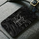 Unique personalised monogrammed and name faux Damascus steel pattern luggage tag. The design features a large monogram design with a name displayed in the modern script. The background features our hand-drawn Damascus steel pattern background displayed subtly in the background. Great gift for father's day, birthday, anniversary, and more! Design and original artwork by Moodthology Papery