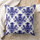 Damask 02 Pattern - Deep Navy Blue on White Cushion