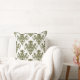 Damask 02 Pattern - Deep Olive on White Cushion
