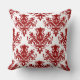Damask 02 Pattern - Ruby Red on White Cushion