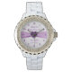 A Digitalbcon Images Design featuring an amethyst purple colour and damask design theme in this one-of-a-kind "Damask Amethyst Wedding Anniversary" Watch. This attractive and elegant design comes complete with contrasting colour clock face numbers and customisable text lettering to suit your own special occasion, making this the ideal anniversary gift for parents or spouse.