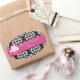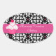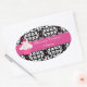 Pretty oval stickers, with a black and white damask background and a bold pink band, across the middle, with a pink and green polka dot cupcake, on the left side. Text in white is fully customisable for your business. Great for bakeries, home bakers, and cake decorators, to use as seals to cake boxes and other packaging. Personalise for your business.