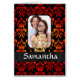 Easily personalise this chic elegant sophisticated red and black damask pattern and wiccan pentacle design by adding your own photo of your loved one and name or text to the templates to make a unique customised product. Visit the PHOTOGIFTZ STORE for matching products. The template photo image text and can easily be replaced with your own, Photographs of the same 4 x 3 dimension should replace the template image exactly. If your photo is of a different dimension you may have to use CUSTOMIZE to adjust the size, of the photo and text, by drag and drop.