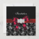 Damask Black Red White Jewel Bow Invitation