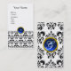 DAMASK BLACK WHITE BLUE GEMSTONE MONOGRAM BUSINESS CARD