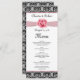 Damask black white, pink rose Wedding Menu
