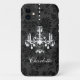 A fancy crystal chandelier and ornate text decorate this iPhone case.