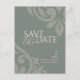 Damask Earthy Olive Photo Wedding Save the Date Announcement Postcard
