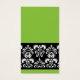 Simple yet beautiful, fun and bright green background with a damask band at the bottom. Remember, you can easily customise with your own text and images! Front and back design. You can change background colour and text colour.