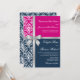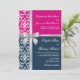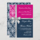 Damask Faux Silver Ribbon Navy Fuchsia Wedding Invitation