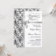 © 2013 Socialite Designs. Our elegant black damask rehearsal dinner invitation has a faux silver ribbon and bow design. All design elements and text are customisable. If you require additional matching wedding products such as save-the-date or thank you photo cards, please do not hesitate to contact Socialite Designs. PLEASE NOTE THAT THE RIBBON IS AN IMAGE AND PRINTED ONTO THE INVITATION.