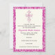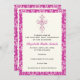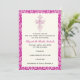 Damask First Holly Communion / Baptism / Confirmation invitation, featuring a fuchsia pink damask border and an elegant pink cross on ivory background. A modern religious invitation for the traditional event of First Holy Communion, suitable for girls. It can be used for several occasions such as Baptism / Christening or Confirmation.