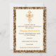 Damask First Holly Communion / Baptism / Confirmation invitation, featuring a brown damask border and an elegant orange cross on ivory background. A modern religious invitation for the traditional event of First Holy Communion, suitable for girls and boys. It can be used for several occasions such as Baptism / Christening or Confirmation.