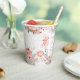Beautiful vintage damask floral pattern on pale background. Sophisticated and feminine 60th birthday party paper cup with white and transparent square shapes for texts. You can easily change text (font, colour, size and position) by clicking the customise button. Matching birthday items: paper napkin, paper plate, guest book, Thank you favour box... and birthday gifts with monogram: pillow, mug, luggage, luggage tag and more... Don't forget the whole collection of vintage floral patterns for birthday.