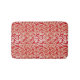 This rug is just as pictured! Vibrant Red and very soft material, nice to step in out of the tub! Matches my set of accessories and shower curtain! A must have to add some whimsy to your bathroom! Very nice, vibrant and clear print! Beautiful!