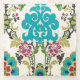 Damask Floral Patterns Plum Turquoise Glass Coaster