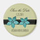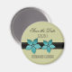 Elegant and sophisticated Damask Flowers Border Save the Date Magnet in turquoise. This fully customisable magnet features damask embellished flowers and a chic striped border. This design is perfect for the bride wanting something classy and feminine! The background colour may be changed to any colour to match any wedding theme. The design element may also be adjusted and moved. Magnets make lovely wedding favours.