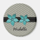 Sassy and trendy Damask Flowers Striped Border Magnet featuring an elegant damask background and a chic striped band with damask flowers. This fashionable magnet makes a stylish gift for a friend, relative or even yourself! Customise with your name or other text to give this design a personal touch.