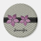 Sassy and trendy Damask Flowers Striped Border Magnet featuring an elegant damask background and a chic striped band with damask flowers. This fashionable magnet makes a stylish gift for a friend, relative or even yourself! Customise with your name or other text to give this design a personal touch.
