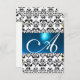 DAMASK GEM MONOGRAM blue white rsvp Invitation