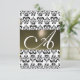 DAMASK GEM MONOGRAM grey white rsvp Invitation