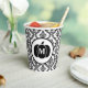 This party cup design features a black pumpkin on a black and white damask background. You can personalise with your initial.