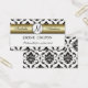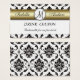 Send these stylish, elegant drink voucher cards with your wedding invitation packet. Wedding Reception Free Drink Voucher Cards with black and white vintage damask pattern printed with your monogram initial, personalised with the the bride and groom names on a metallic gold line with 3D shadow effect. Printed with your names and monogram. Give your free drink tickets out at the reception or include them in your wedding invitations. Design by Elke Clarke© Graphics licensed.