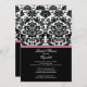 Start off your event off right with our trendy & elegant damask Bridal shower invitation set on a black background with a Honeysuckle Pink band. Just customise our invitation with your wedding information and you're all set to go. Available in other colour combinations in our shop at www.celebrateitweddings.com. Check out our matching thank you notes, stickers and bridal buttons in our shop