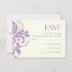 Elegant damask motif lavender purple, grey, ivory wedding RSVP response/reply card. A modern yet classic wedding design with a retro flair. Delicate, with the elegant Parisian font and a vintage feel to it, perfect for contemporary or traditional all seasons weddings: spring, summer, fall or winter.