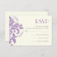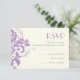 Damask lavender grey ivory wedding RSVP reply card