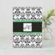 DAMASK MONOGRAM,black and white, emerald green Invitation