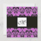 DAMASK MONOGRAM,black and white,purple Invitation