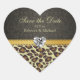 Damask Elegant Leopard themed Save the date sticker with customisable text field and heart diamond.