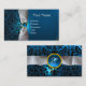 DAMASK MONOGRAM white ribbon black blue Business Card