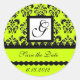 DAMASK MONOGRAM ,yellow green Classic Round Sticker