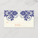 Damask motif navy blue, coral wedding place card