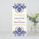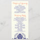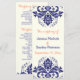 Damask navy blue, coral ivory wedding program programme
