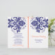 Elegant damask motif navy blue, coral orange folded wedding ceremony and party program. A modern yet classic wedding design with a retro flair. A delicate wedding design with a vintage feel to it, perfect for a contemporary or traditional spring or summer wedding. You will have to fold it in the centre. Choose only this type of paper-value as it folds well.