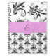 Damask Pattern, Black and White Damask, Monogram Spiral Notebook