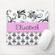 Damask Pattern, Black and White Damask, Your Name Mouse Pad